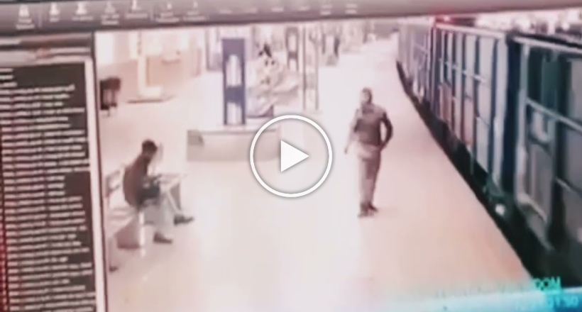 இதுக்கு தான் TRAIN வேகமா போகும்பொழுது பக்கத்துல நிக்கக்கூடாதுனு சொல்றது , தலை சுற்றி ரயில் முன் விழுந்த காவல் அதிகாரியின் சிசிடிவி காட்சிகள் .,