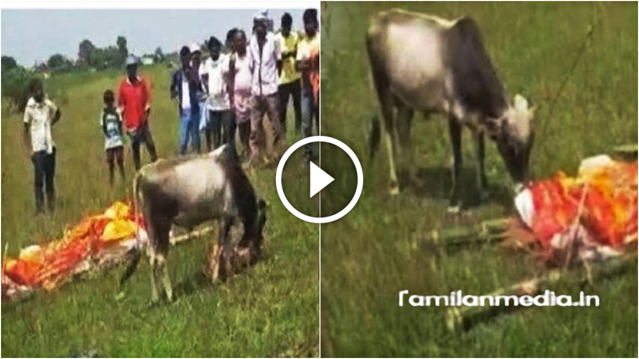 இ றந்த எஜமானரின் உடலை பார்த்து தேம்பி அழும் மாடு , பாக்கும் போதே பாவமா இருக்கு ..