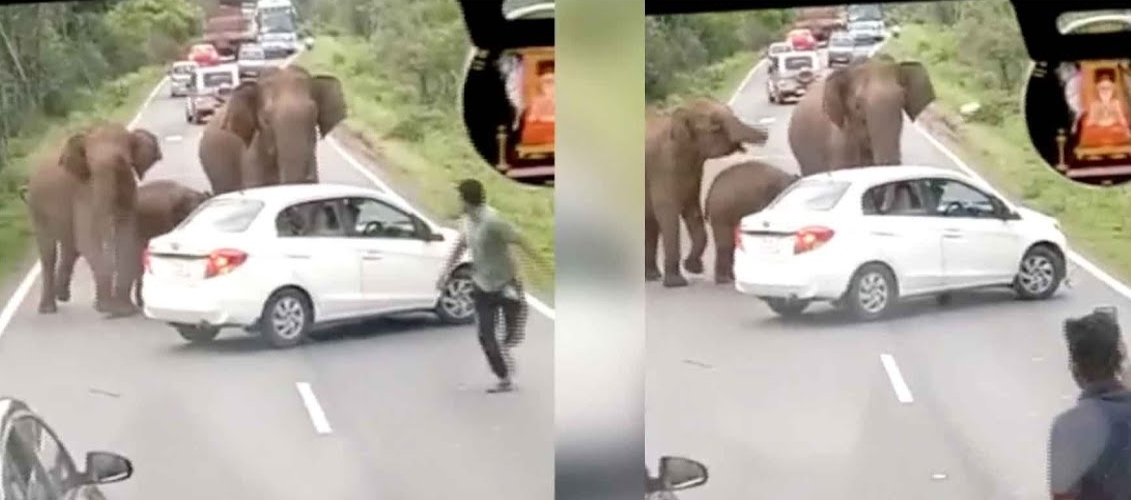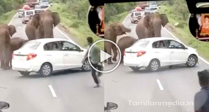 ‘சாலையில் நின்றிருந்த கார்’… யானை வந்ததும் செய்வதறியாமல் தவித்த ஓட்டுநர்.. வெளியான திக் திக் காட்சி..