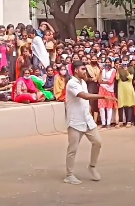சூழ்ந்து நின்றிருந்த மாணவிகள் மத்தியில் பிரேக் டான்ஸ் ஆடி அனைவரையும் கவர்ந்த கல்லூரி மாணவர்… வைரல் வீடியோ
