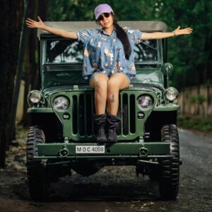 அதே சமயம் மாடர்ன் பெண்ணான அவர் படு கிளாமரான புகைப்படங்களை தன்னுடைய இன்ஸ்டாகிராம் பக்கத்திலும் பதிவிட்டுக் கொண்டு வருகிறார்.சமூக வலைத்தளங்களில் எப்பொழுதும் ஆக்டிவாக இருக்கக்கூடிய திவ்யா சத்யராஜ் தற்பொழுது குட்டையான ஆடை ஒன்றை உடுத்தி ஜீப் மேல் அமர்ந்து புகைப்படம் எடுத்து அதனை இன்ஸ்டாகிராம் பக்கத்தில் பதிவிட்டுள்ளார். தற்பொழுது அந்த புகைப்படம் வைரலாகி வருகிறது.
