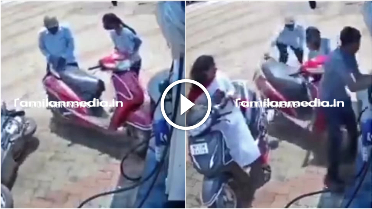 பெட்ரோல் பங்க்யில் வேலை செய்யும் ஊழியரை இருசக்கர வாகனத்தை வைத்து அலேக்காக தூக்கிய பெண் , ஏன் தெரியுமா .? விபரம் உள்ளே ..