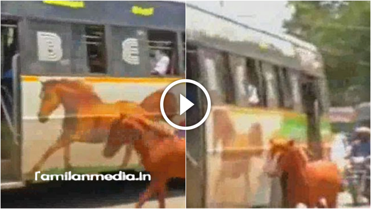 பேருந்தில் இருந்த குதிரை புகைப்படத்தை பார்த்து கூடவே ஓடிச்சென்ற குதிரையின் காணொளியை பாருங்க .,
