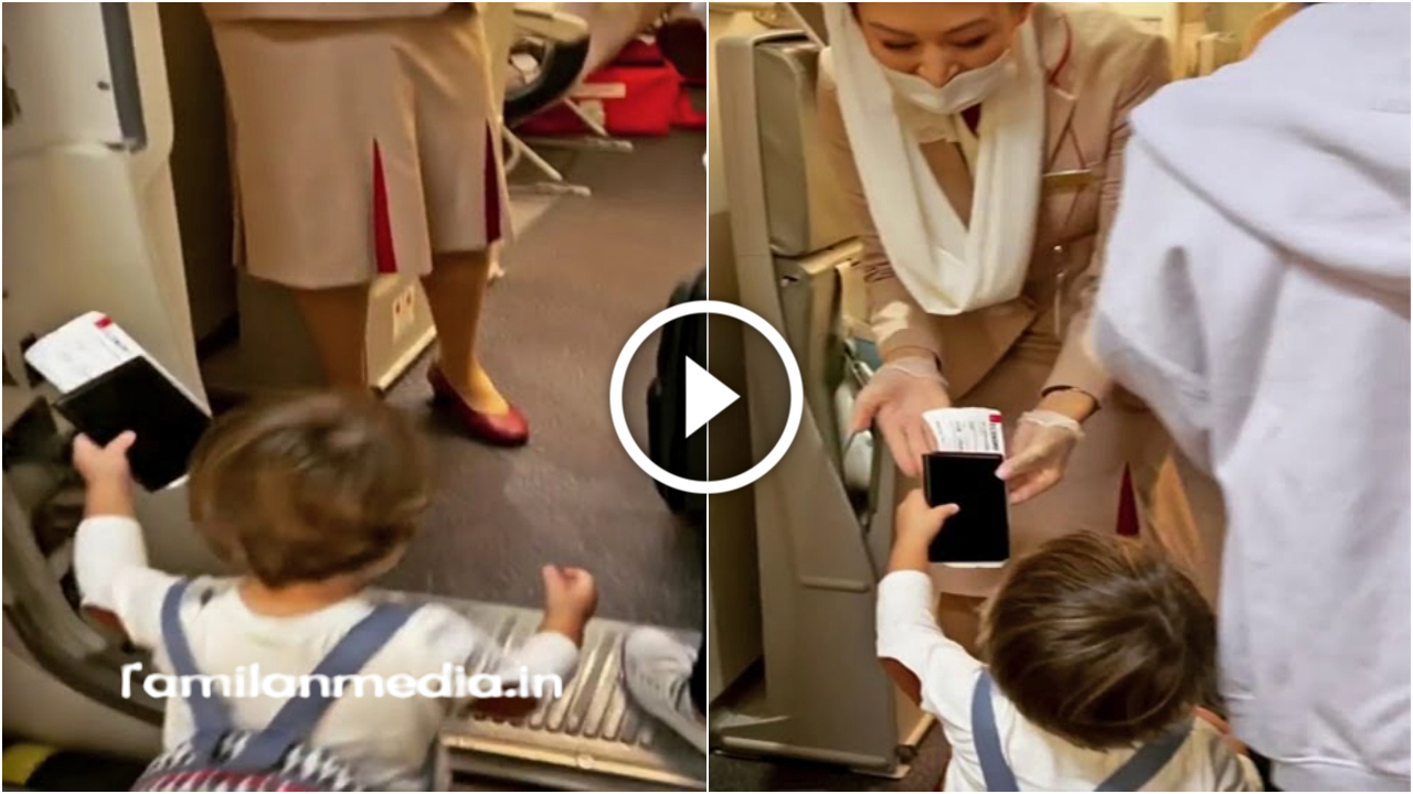 சமீபத்தில் குழந்தை ஒன்று தனது நுழைவு சீட்டை எடுத்து சென்று விமானத்துக்குள் இருந்த ஊழியர் ஒருவரிடம் கொடுத்துள்ளார் , இதனை கண்ட அந்த ஊழியர் குழந்தையிடம் கொஞ்சி விளையாடும் காணொளியானது வெளியாகி உள்ளது ..