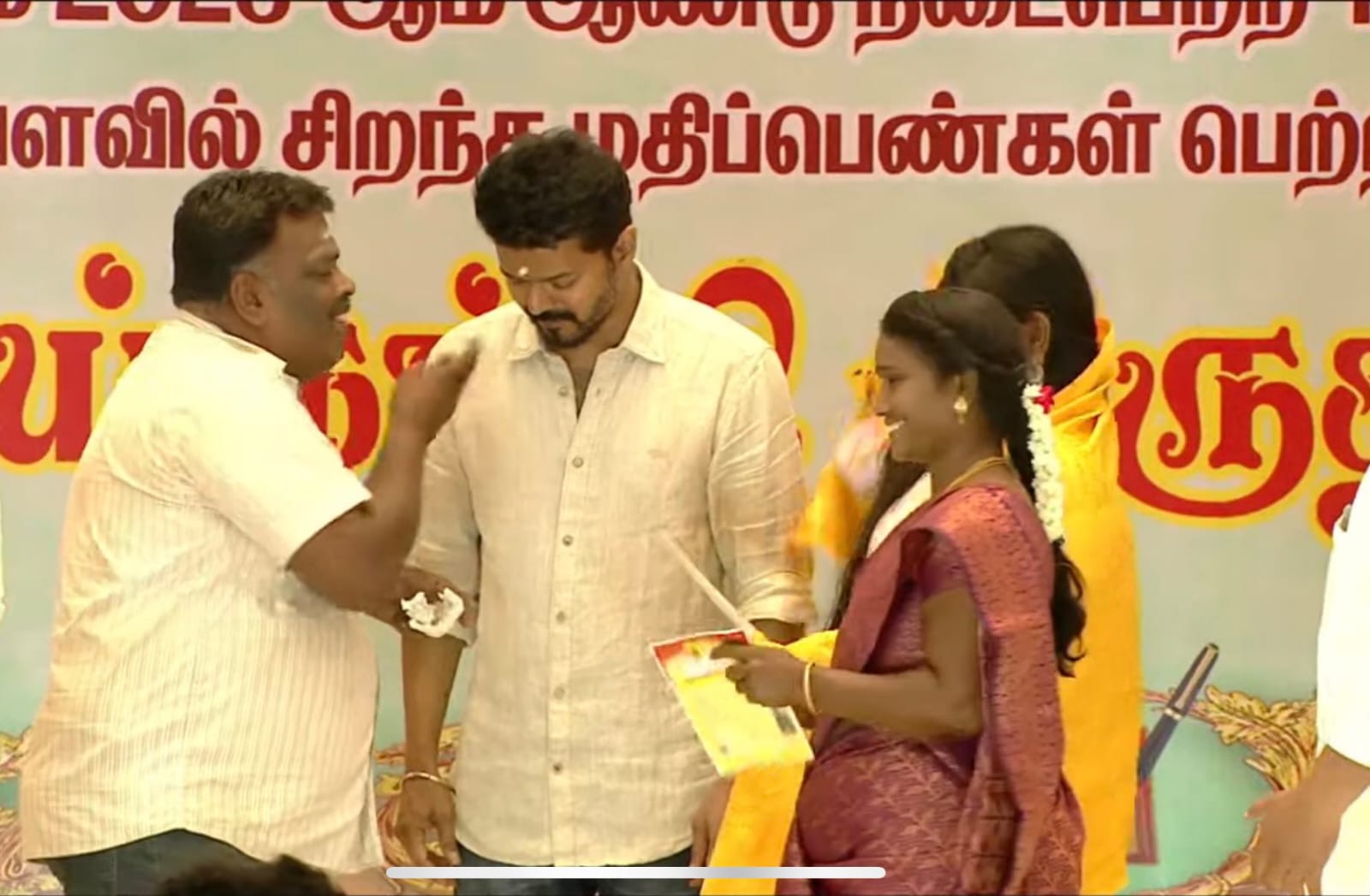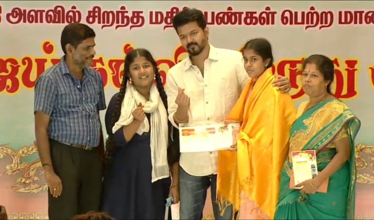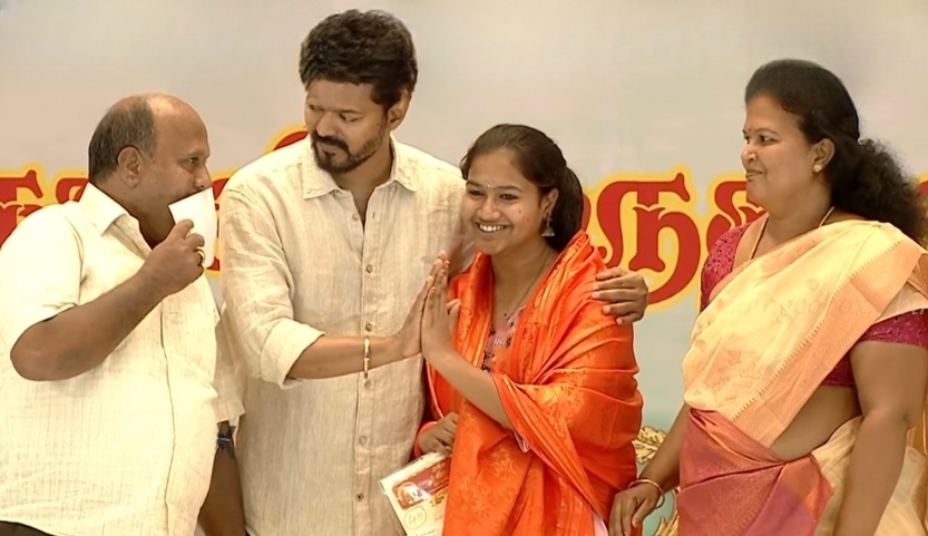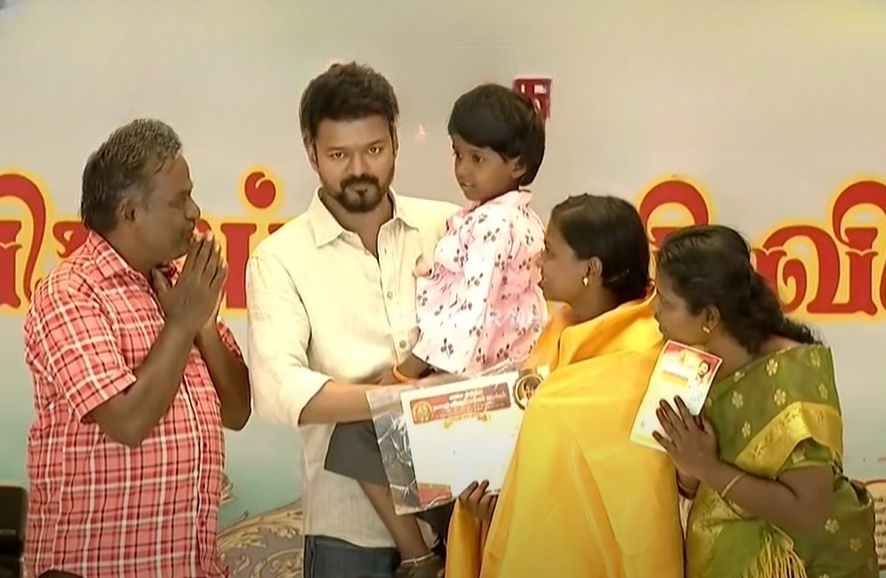 அதேசமயம் மாற்றுத்திறனாளி மாணவிக்கு மேடையில் இருந்து கீழே இறங்கிச் சென்று சான்றிதழ் வழங்கிய விஜயின் செயல் பலரையும் நெகிழ வைத்தது.