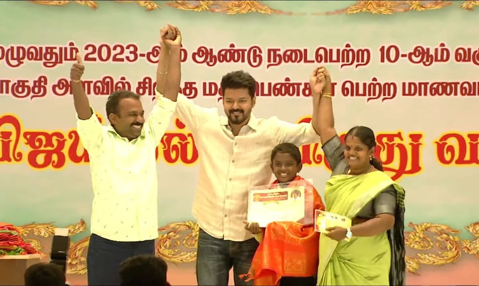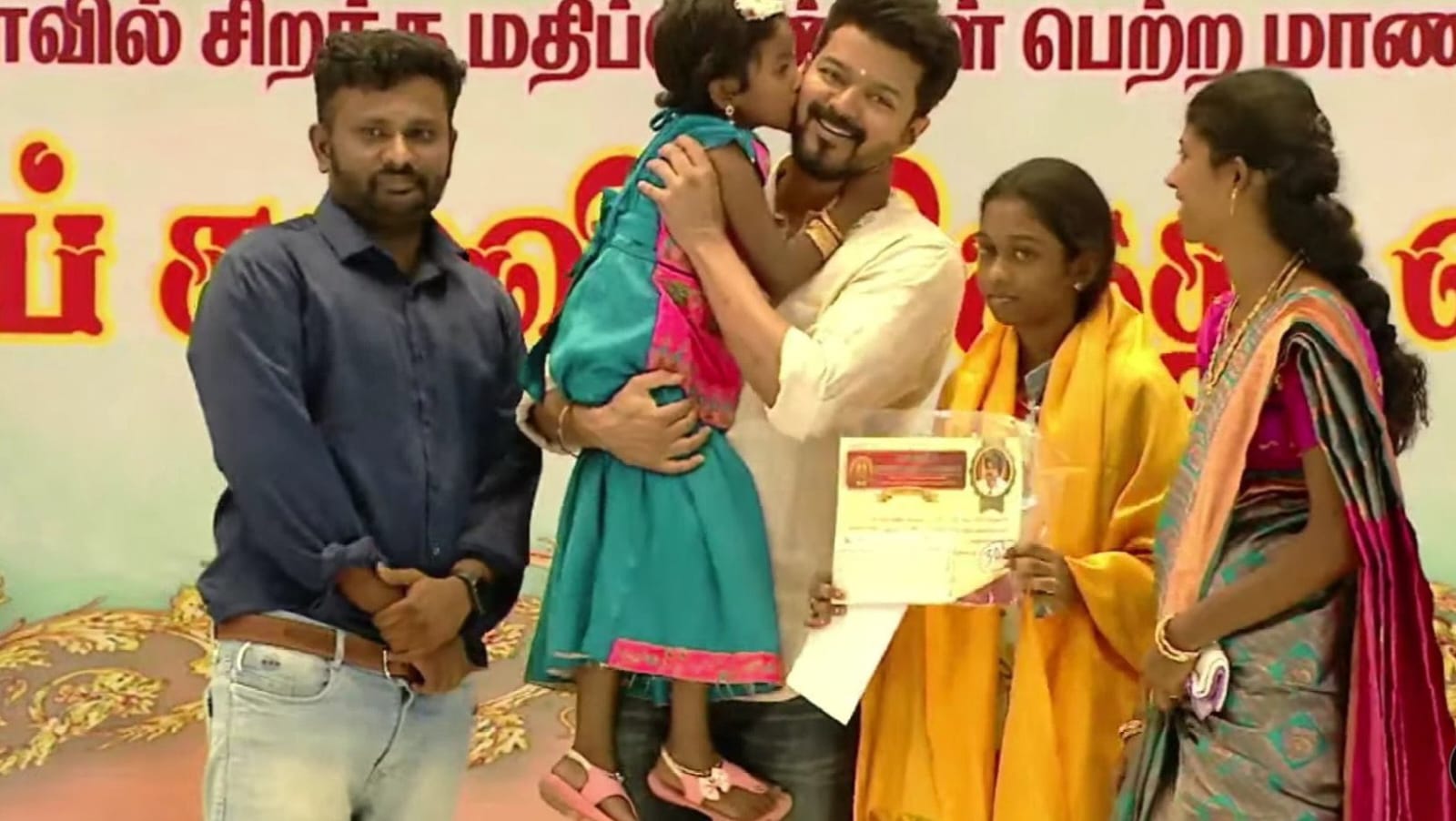 அதேசமயம் மாணவர்கள் மட்டுமல்லாமல் பெற்றோர்கள் அனைவரும் மேடையில் மிகுந்த உற்சாகத்துடன் விஜய் இடம் கைகுலுக்கி மற்றும் கட்டிப்பிடித்து முத்தம் கொடுப்பது என பல நெகிழ்ச்சியான செயல்களில் ஈடுபட்டனர்.