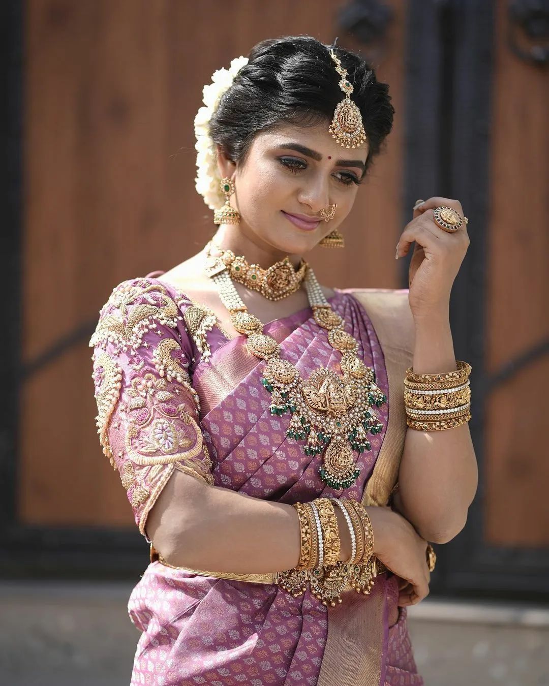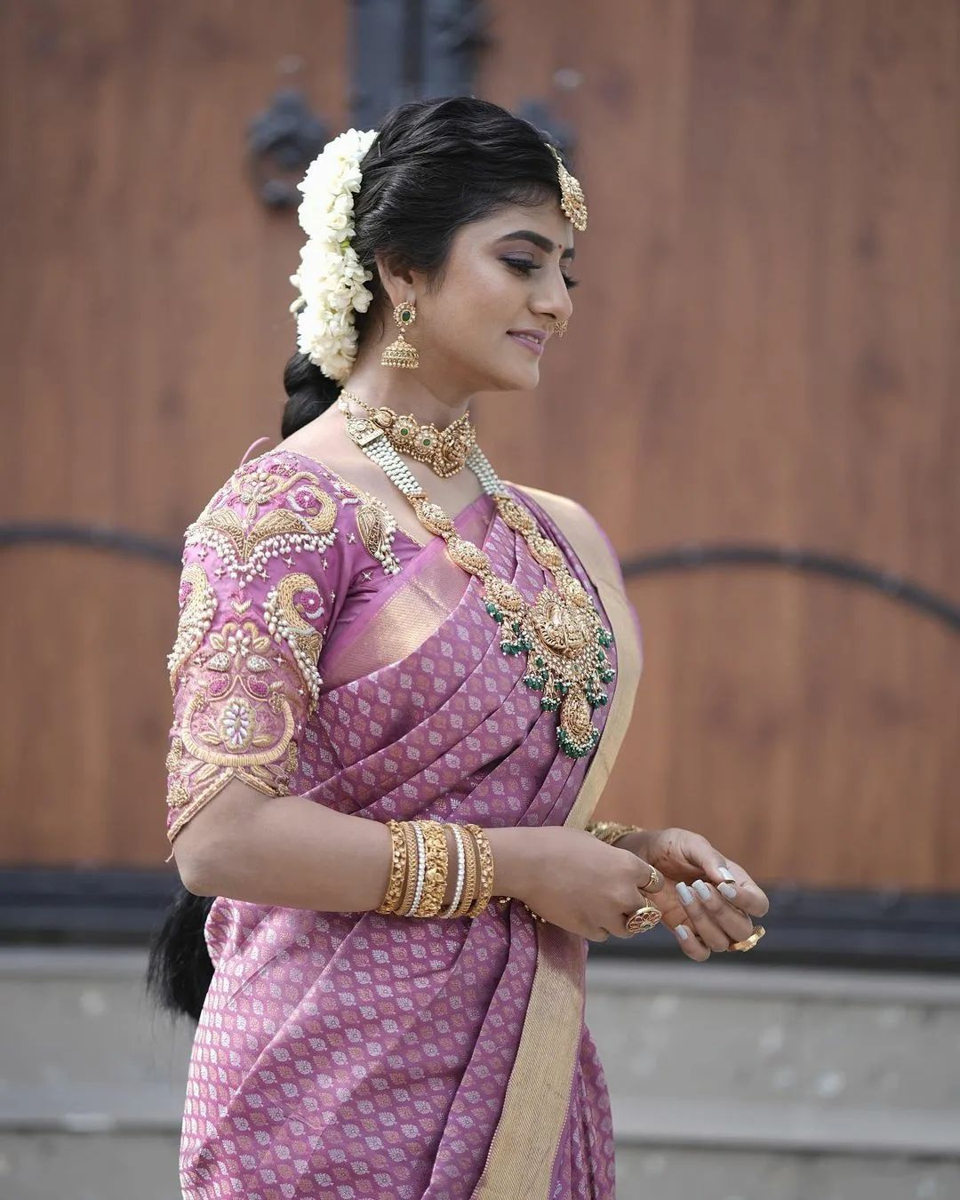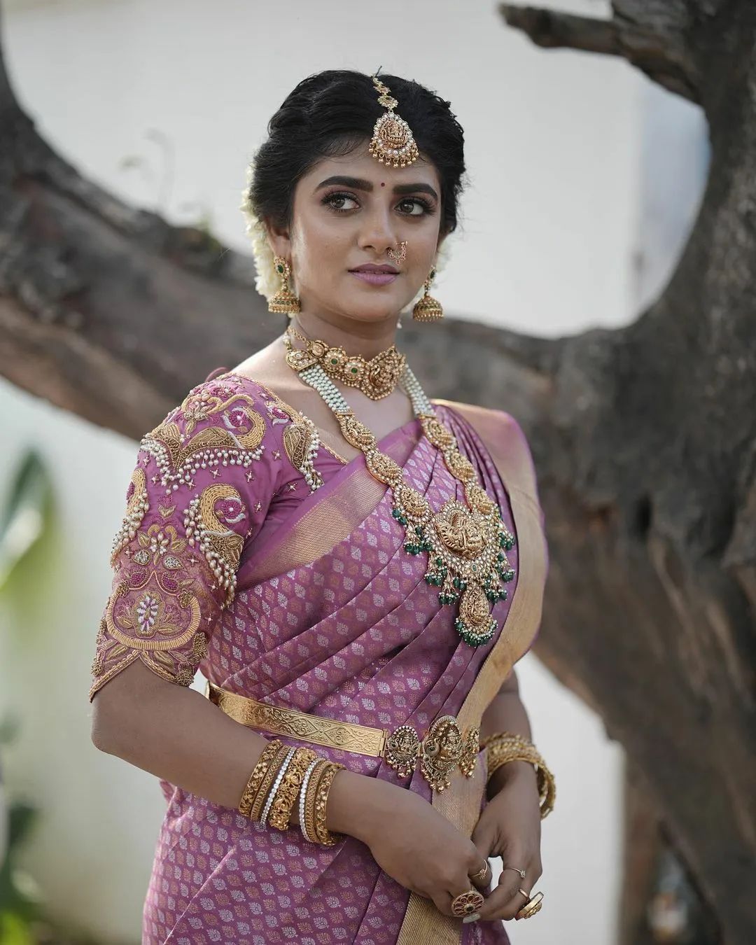 பட்டுப் புடவையில் திருமண கோலத்தில் மணப்பெண்ணாக ஜொலிக்கும் நடிகை கேப்ரில்லா…. வைரலாகும் புகைப்படங்கள்….!!!!
