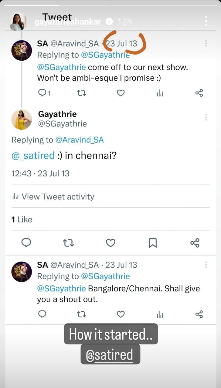 இந்நிலையில் காயத்ரி பிரபல நகைச்சுவை நடிகரான அரவிந்த் எஸ் ஏ என்பவரை காதலித்து வருவதாக தகவல் வெளியாகி உள்ளது. தென்னிந்தியாவில் ஸ்டாண்ட் அப் காமிக்ஸில் மிகவும் புகழ்பெற்றவர் தான் அரவிந்த் எஸ் ஏ. இவர் கடந்த 2013 ஆம் ஆண்டு வெளியான ஆரம்பம் திரைப்படத்தில் உதவி இயக்குனராக பணியாற்றினார். 2017 ஆம் ஆண்டு டைம்ஸ் ஆப் இந்தியாவால் சென்னையில் மிகவும் விரும்பத்தக்க மனிதர்களில் ஒருவராக தேர்வானார்.