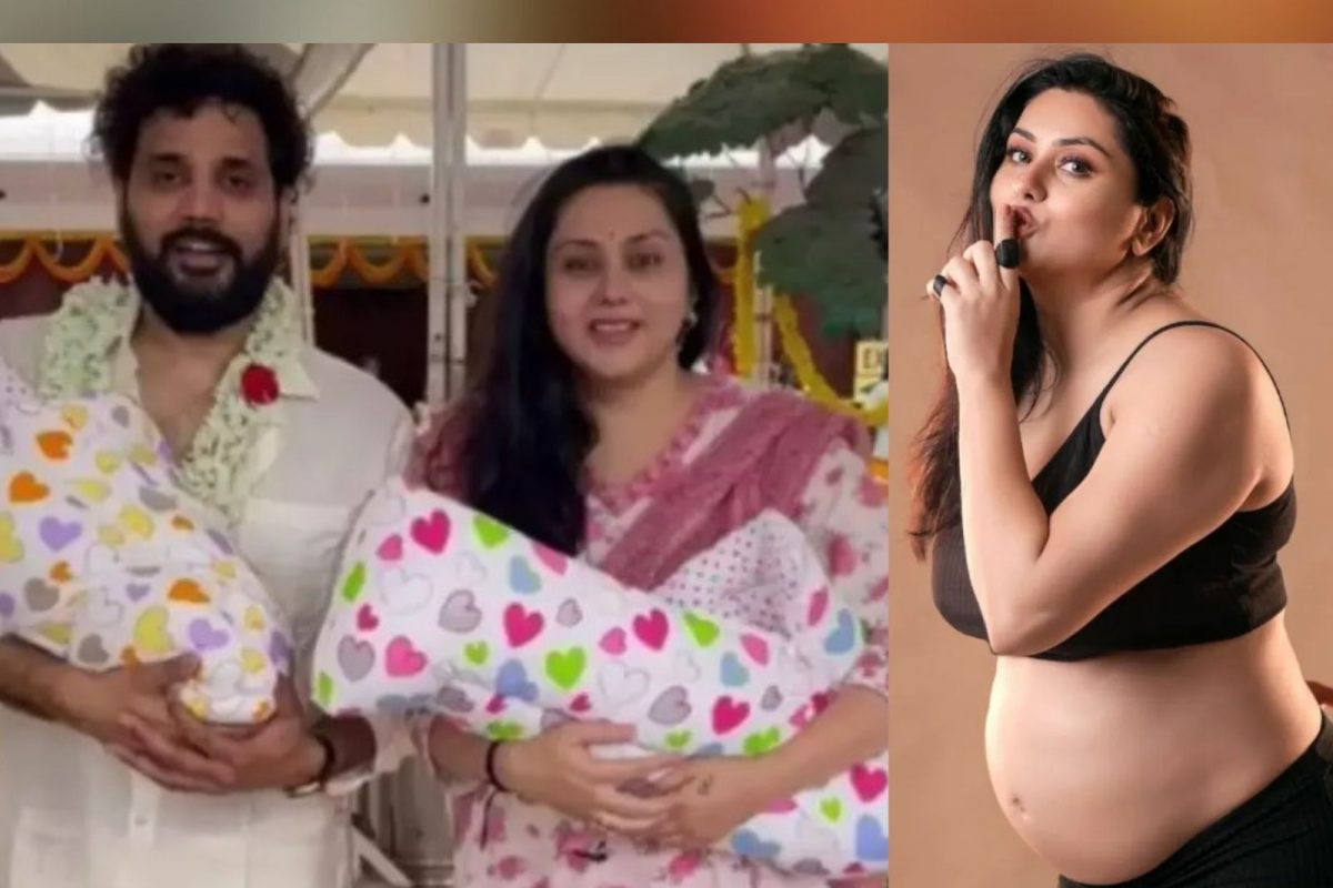 இரட்டை குழந்தைகளுக்கு பெயர் சூட்டிய நடிகை நமீதா…. என்ன பெயர் தெரியுமா?…. வைரலாகும் க்யூட் புகைப்படங்கள்….!!! – cinefeeds