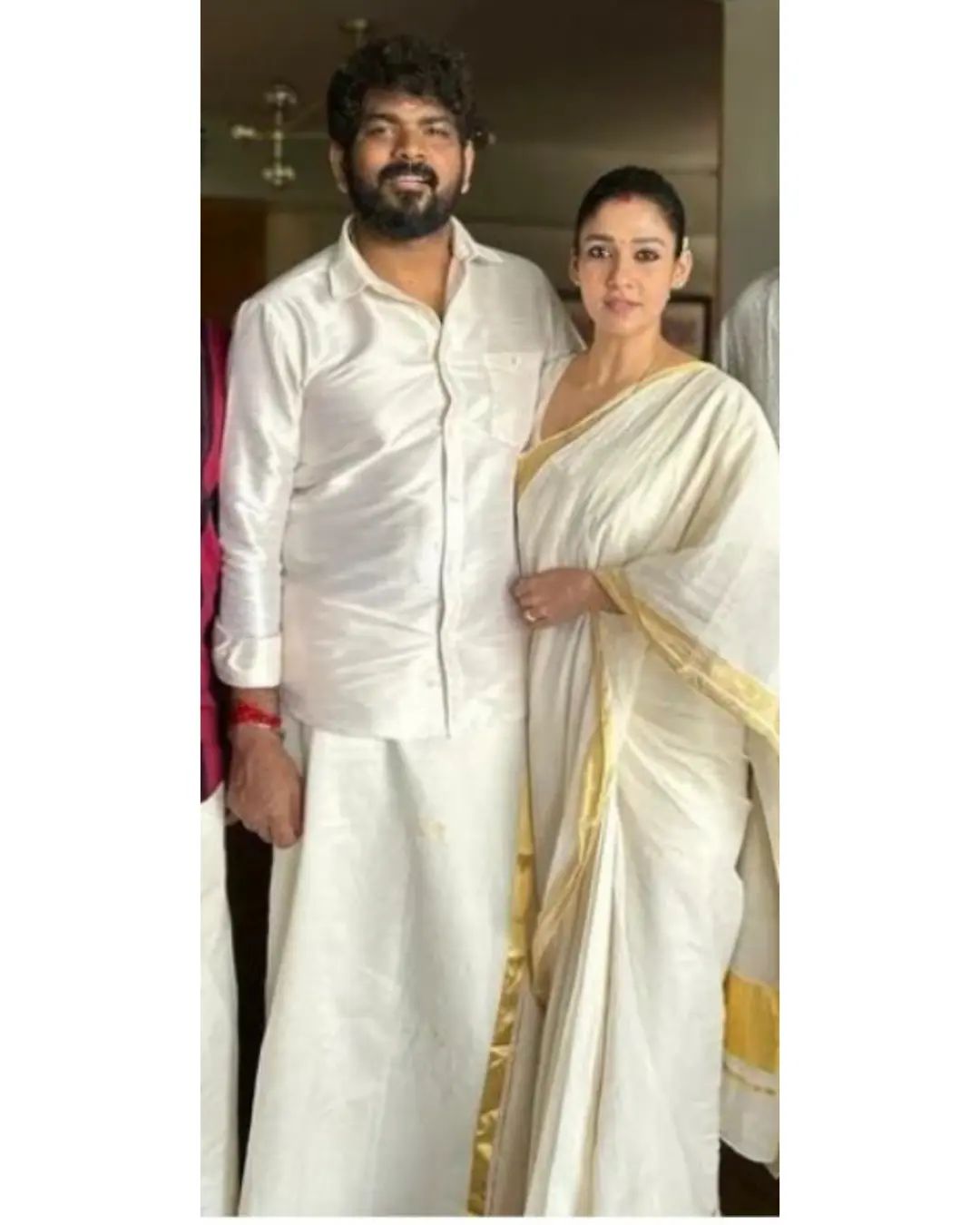 கணவருடன் விஷு கொண்டாடிய நடிகை நயன்தாரா…. கேரளா புடவையில் கும்முன்னு இருக்கும் லேட்டஸ்ட் புகைப்படங்கள்…!!