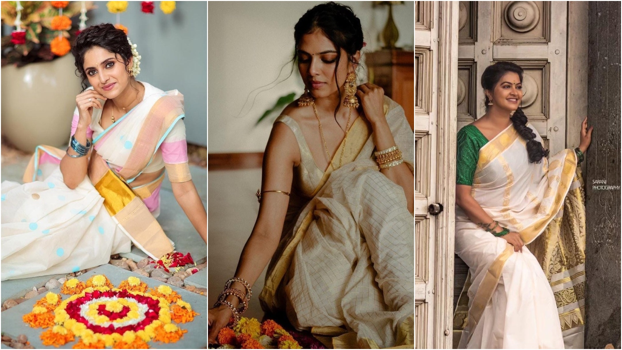 ஓணம் ஸ்பெஷல்… கேரளா புடவையில் அச்சு அசல் மலையாளத்து பைங்கிளியாக மாறிய நடிகைகள்… ஓணம் கொண்டாடிய அழகிய புகைப்படங்கள்..!!