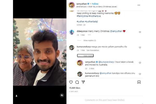 இந்நிலையில் யுதன் கார்த்திக் தற்போது தமிழ்நாட்டில் இல்லை. ஆஸ்திரேலியாவில் செட்டில் ஆகிவிட்டார். அங்கு எடுத்த ஒரு புகைப்படத்தை அவர் பகிர்ந்து உள்ள நிலையில் அந்த புகைப்படம் தற்போது இணையத்தில் வைரல் ஆகி வருகிறது.