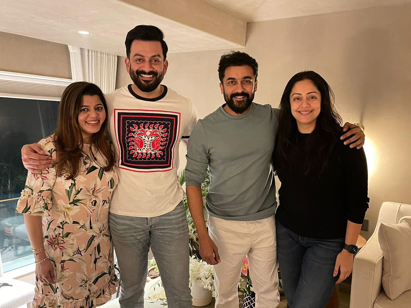 இந்நிலையில் தற்போது சூர்யா ஜோதிகாவின் மலையாள நடிகர் பிரித்விராஜ் சந்தித்து புகைப்படம் எடுத்துள்ளார். அந்த புகைப்படம் தற்போது இணையத்தில் வைரல் ஆகி வரும் நிலையில் இந்த சந்திப்பு தளபதி 67 செட்டில் நடந்ததா என்று பலரும் கேள்வி எழுப்பி வருகிறார்கள்.