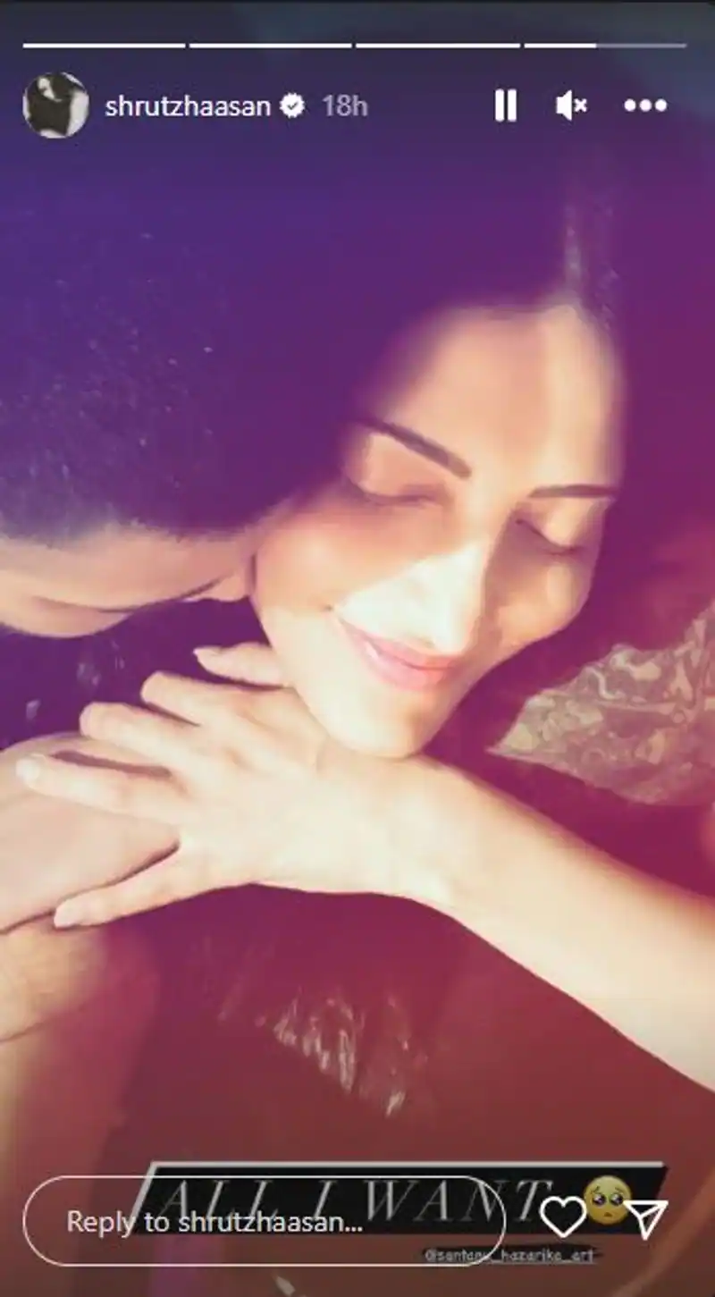 அதே சமயம் தனது காதலருடன் இருக்கும் பல புகைப்படங்களையும் இணையத்தில் அவ்வப்போது பகிர்வது வழக்கம். இந்நிலையில் ஸ்ருதிஹாசன் தனது காதலருடன் சேர்ந்து கட்டிப் பிடிப்பது போன்ற வீடியோ ஒன்றை வெளியிட்டு அதில், எனக்கு எல்லாம் வேண்டும் என்று பதிவிட்டுள்ளார். அந்த புகைப்படம் தற்போது இணையத்தில் வைரலாகி வருகிறது.