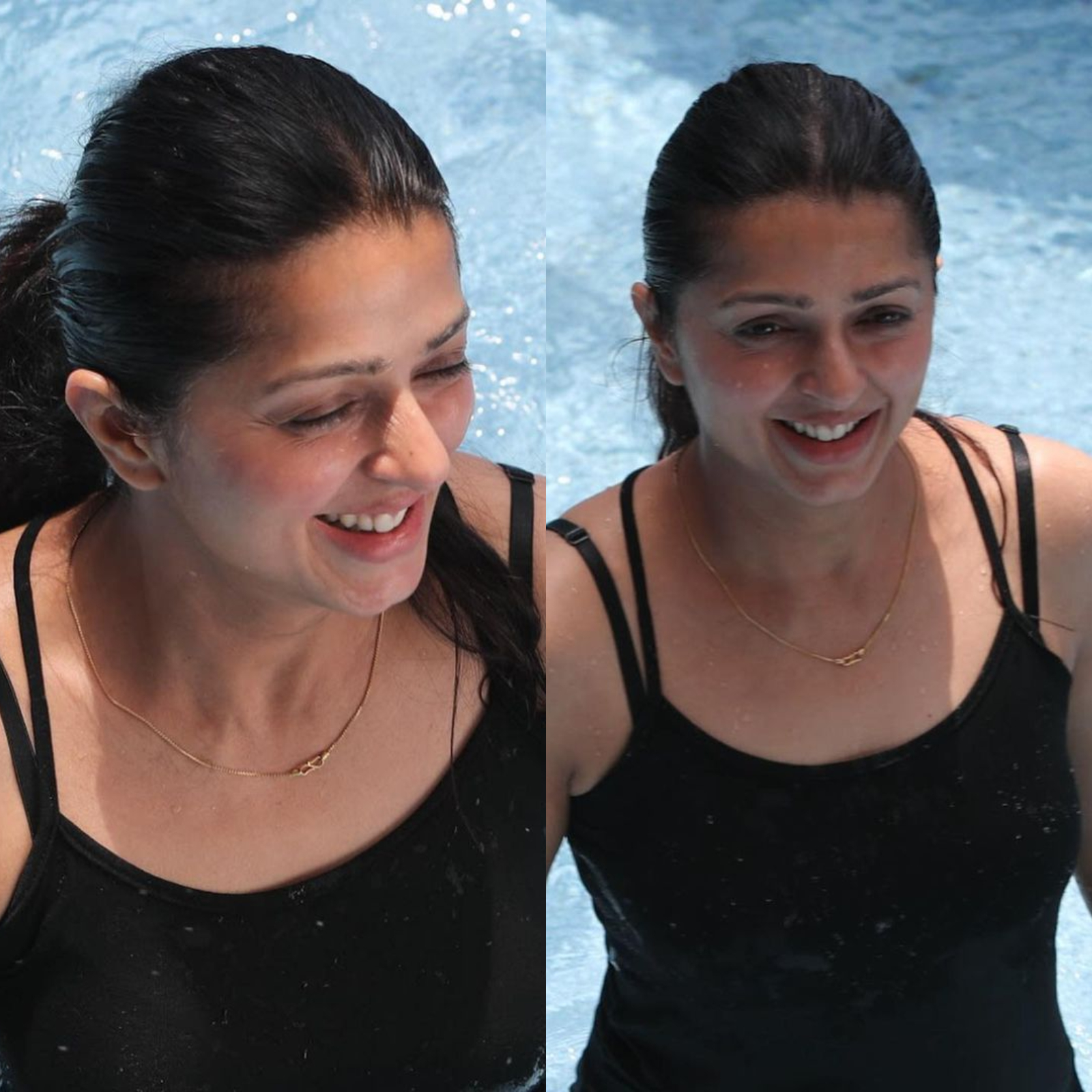 இவர் கடந்த 2007 ஆம் ஆண்டு பரத் தாகூர் என்பவரை திருமணம் செய்து கொண்ட நிலையில் சினிமாவிலிருந்து சற்று விலகி குடும்பத்தை கவனித்து வந்த இவர் மீண்டும் படங்களில் எண்ட்ரி கொடுத்துள்ளார். இதனிடையே சமூக வலைத்தளத்தில் எப்போதும் ஆக்டிவாக இருக்கும் இவர் அடிக்கடி தனது புகைப்படங்கள் மற்றும் வீடியோக்களை இணையத்தில் பகிர்வது வழக்கம். அவ்வகையில் தற்போது நீச்சல் குளத்தில் விதவிதமான புகைப்படங்கள் எடுத்து அவர் பகிர்ந்து உள்ள நிலையில் அந்த புகைப்படங்கள் தற்போது ரசிகர்கள் மத்தியில் வைரலாகி வருகிறது.