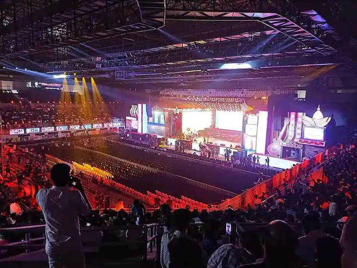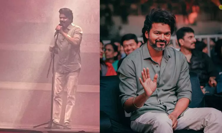 தமிழ் சினிமாவில் முன்னணி நடிகர்களில் ஒருவராக வலம் வந்து கொண்டிருப்பவர் தான் நடிகர் விஜய். இவரின் நடிப்பில் தற்போது உருவாகி வரும் திரைப்படம் தான் வாரிசு. இந்தத் திரைப்படத்தை வம்சி இயக்க விஜய்க்கு ஜோடியாக ராஷ்மிகா மந்தனா நடித்துள்ளார். தில் ராஜு தயாரிக்க தமன் இசையமைக்க இந்த திரைப்படம் உருவாகியுள்ளது. அதுமட்டுமல்லாமல் இந்த திரைப்படத்தில் சரத்குமார், குஷ்பூ மற்றும் யோகி பாபு உள்ளிட்ட பலரும் நடித்துள்ளனர். இந்த திரைப்படத்தின் இரண்டு பாடல்கள் ஏற்கனவே வெளியிடப்பட்ட நிலையில் வாரிசு படத்தின்  ஆடியோ வெளியீட்டு விழா படு பிரம்மாண்டமாக சென்னை நேரு விளையாட்டு அரங்கில் நேற்று நடைபெற்றது.