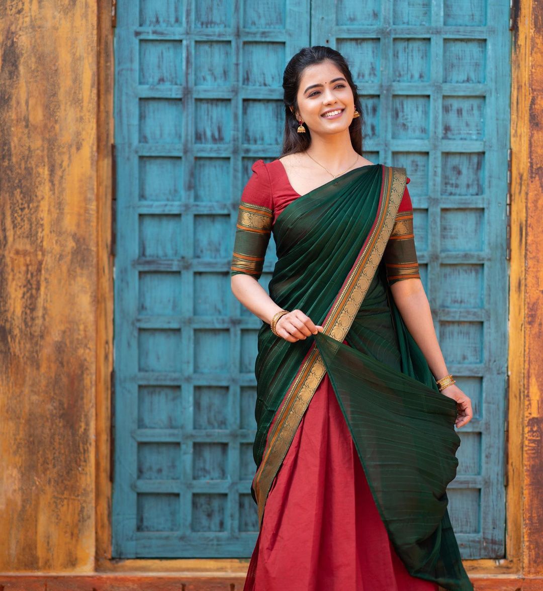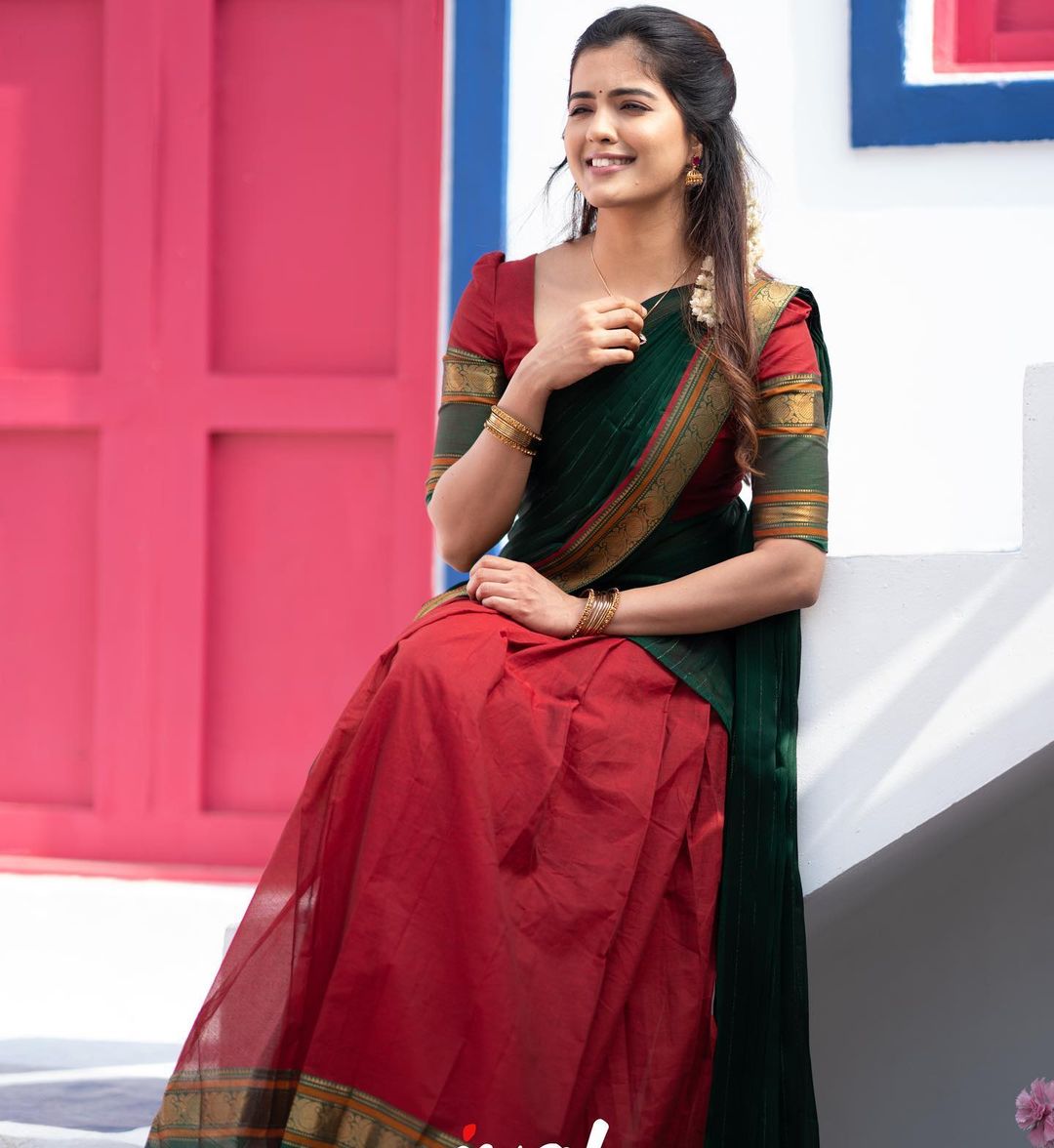 இவருக்கு இன்ஸ்டாகிராம் பக்கத்தில் ஏராளமான ஃபாலோயர்ஸ் உள்ளனர். தற்போது இவர் பாவாடை தாவணியில் இருக்கும் புகைப்படங்களை பகிர்ந்துள்ள நிலையில் அந்த புகைப்படங்கள் இணையத்தில் வைரல் ஆகி வருகிறது.