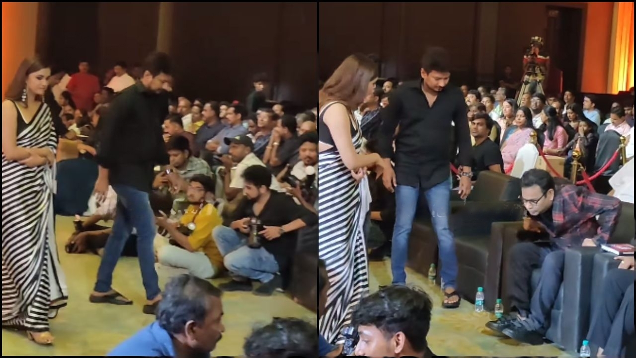 அப்பொழுது உதயநிதியின் பக்கத்தில் ஏ ஆர் ரஹ்மான்அமர்ந்திருந்தார். நடிகர் உதயநிதியும், கீர்த்தி சுரேஷும் மேடையில் இருந்து இறங்கி வந்த போது அதை பார்த்த அவர் உடனே எழுந்து கீர்த்தி சுரேஷை உட்கார சொல்ல அவர் மறுத்து வேறொரு இடத்தில் அமர்ந்து கொண்டார். தற்பொழுது இந்த வீடியோவானது இணையத்தில் வெளியாகி வைரலாகி வருகிறது. இதோ அந்த வீடியோ….