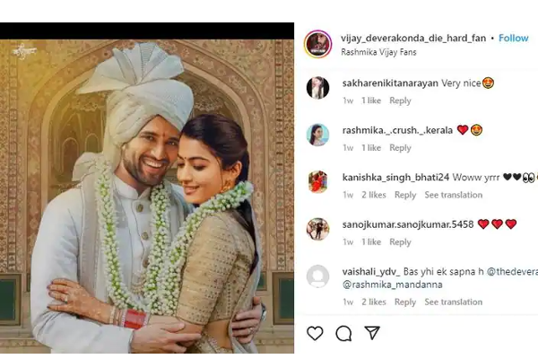 ஆனால் இது தொடர்பாக இருவருமே எந்த ஒரு செய்தியையும் வெளியிடவில்லை. என் நிலையில் ரஷ்மிகா மந்தனாவிற்கு விஜய் தேவரகொண்டா உடன் திருமணம் நடந்து முடிந்து விட்டதாக ஒரு செய்தி இணையத்தில் தீயாய் பரவி வருகிறது. அதாவது ராஷ்மிகா மந்தரா மற்றும் விஜய் தேவரகொண்டா இருவரும் திருமணம் செய்து கொண்டது போல் ஃபேன் மேடு புகைப்படத்தை நெட்டிசன் ஒருவர் உருவாக்கி அதனை இணையத்தில் பகிர்ந்து உள்ள நிலையில் அந்த புகைப்படம் தற்போது இணையத்தில் வைரல் ஆகி வருகிறது.