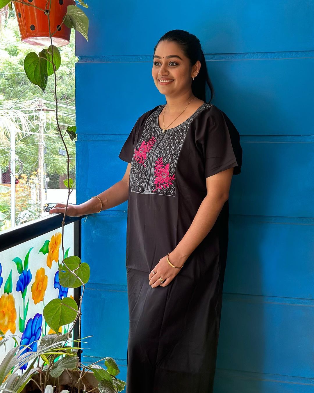 இந்த நிலையில் தற்போது நைட்டி விளம்பரத்திற்கு போஸ் கொடுப்பது போல விதவிதமான நைட்டியில் அவர் வெளியிட்டுள்ள லேட்டஸ்ட் புகைப்படங்கள் வைரல் ஆகி வருகிறது.