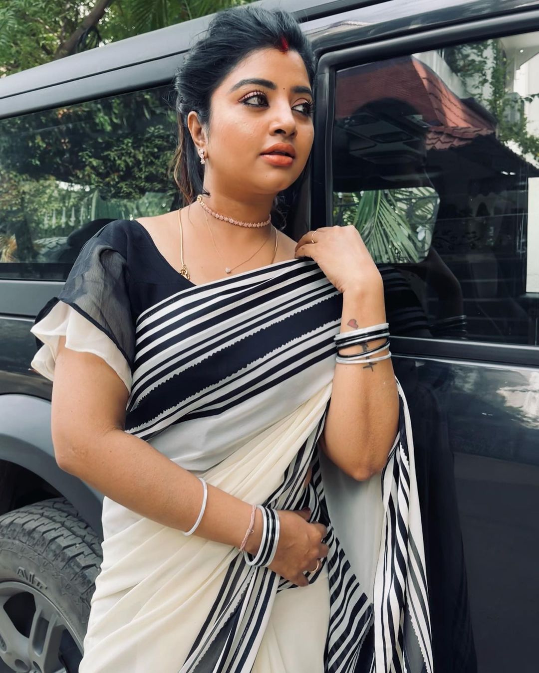 உடல் எடை குறைத்து ஸ்லிம்மாக மாறிய ரவீந்தர் மனைவி மகாலட்சுமி.. சேலையில் கலக்கும் லேட்டஸ்ட் கிளிக்ஸ்..!!