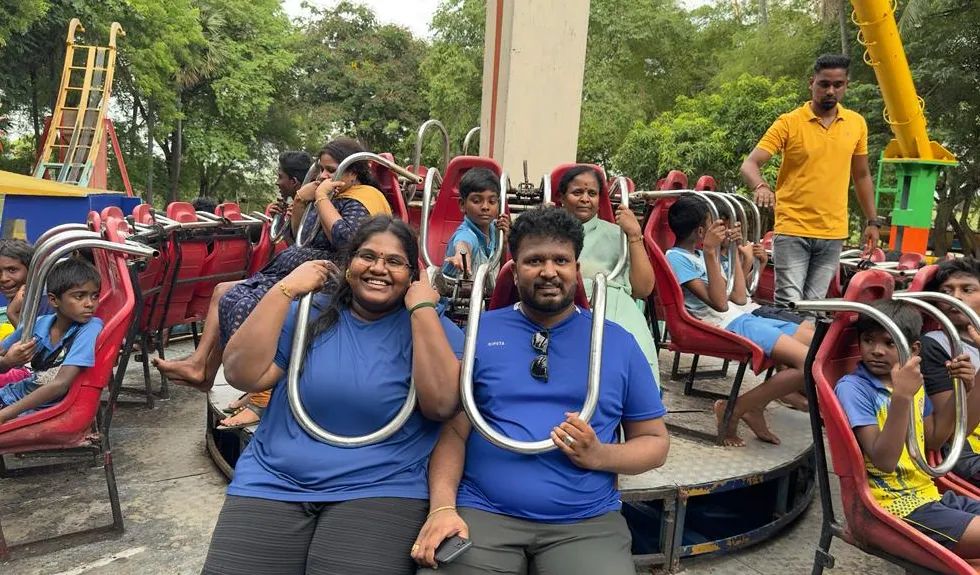இந்நிலையில் தொடர்வோம் கார்த்திக் தனது வருங்கால மனைவி இந்த ராஜாவுடன் இணைந்து தனது அறக்கட்டளையில் உள்ள குழந்தைகளை அழைத்துக் கொண்டு மதுரையில் உள்ள அதிசயம் தீம் பார்க் சென்றுள்ளார்.