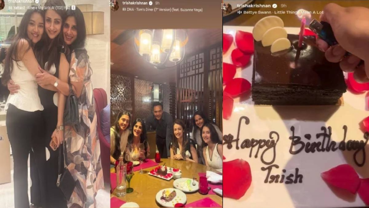 தென்னிந்திய சினிமாவின் முன்னணி நடிகையான திரிஷா, மே 4-ஆம் தேதி தனது பிறந்தநாளைக் கொண்டாடவுள்ளார். இருப்பினும், சில நாட்களுக்கு முன்னதாகவே அவர் தனது நெருங்கிய நண்பர்களுடன் இணைந்து பிறந்தநாள் கொண்டாட்டத்தைத் தொடங்கியுள்ளார். இந்த கொண்டாட்டத்தின் போது எடுக்கப்பட்ட புகைப்படங்கள் மற்றும் வீடியோக்கள் தற்போது சமூக வலைதளங்களில் வைரலாகி வருகின்றன.